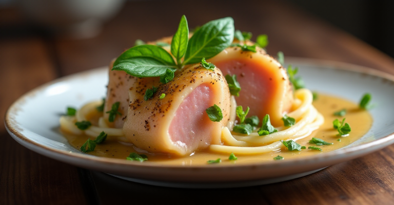 Le vitello tonnato est l’un des plats les plus emblematiques et les plus raffines de la cuisine piemontaise. Cette preparation froide associe de fines tranches de veau rosees a une sauce cremeuse au thon, aux capres et aux anchois, creant un equilibre de saveurs absolument unique. Originaire du Piemont, dans le nord-ouest de l’Italie, le vitello tonnato est traditionnellement servi en antipasto ou en piatto freddo pendant les mois d’ete, bien qu’il soit apprecie toute l’annee dans les grandes occasions.